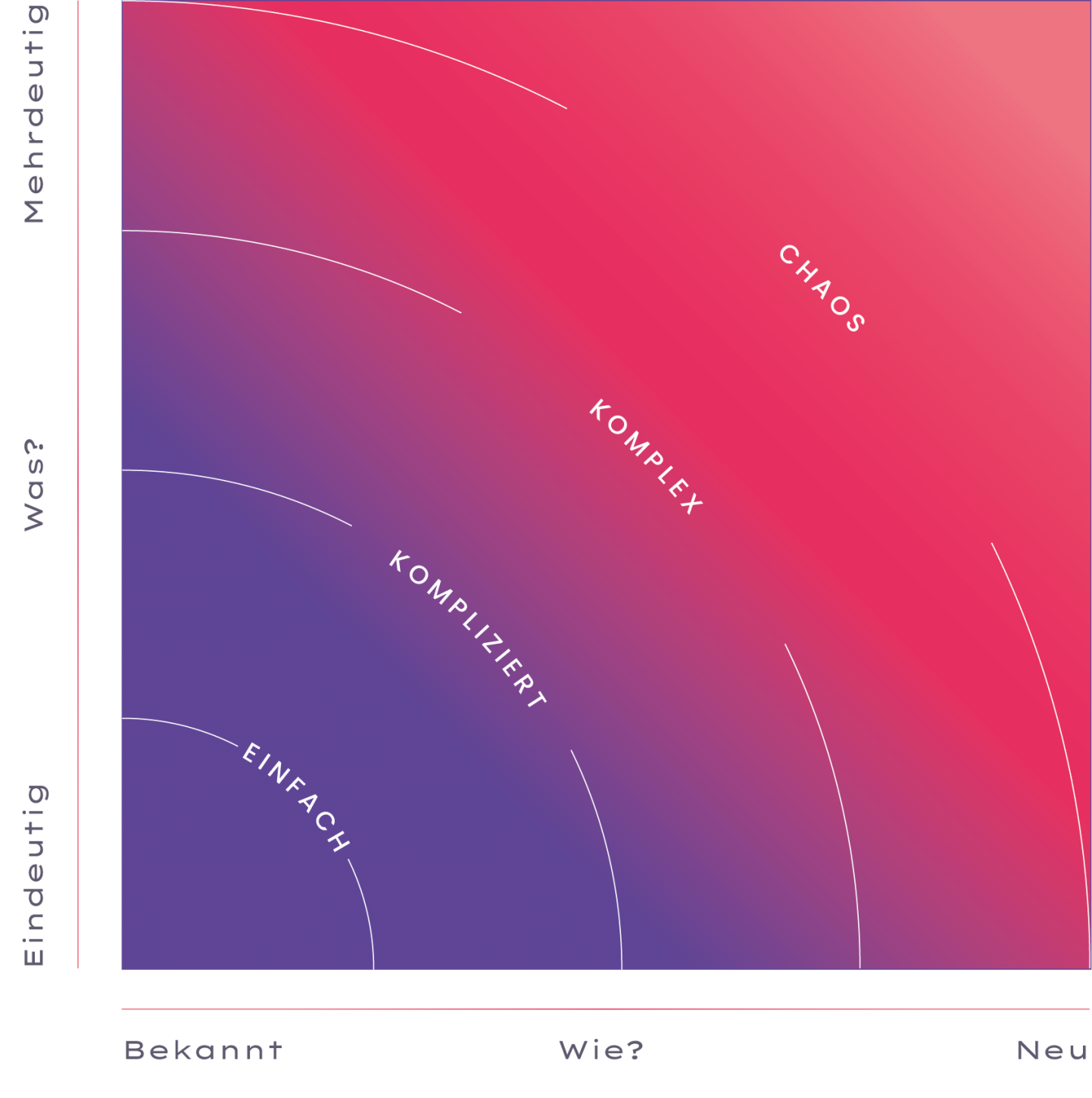 Wir sehen es als unsere Aufgabe, gemeinsam mit Ihnen zu erarbeiten, in welche Kategorie Ihre spezifischen Herausforderungen fallen. Durch unseren kollaborativen Prozess finden wir nicht nur Lösungen, sondern entfachen auch die Leidenschaft für die Innovations- und Zukunftsfähigkeit Ihrer Organisation. Dieses (Denk-) Werkzeug soll ein Beispiel aus unserem Werkzeugkoffer sein, welches wir gern in der von Ihnen gewünschten Form – im Sparring für Unternehmer und Führungskräfte, in der Analyse und Beratung, im Interimsmanagement oder im Workshop mit Ihrem Team anwenden.